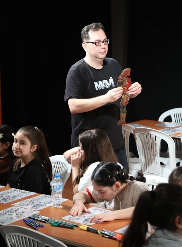 Özgür Atkın’ın düzenlediği “Karagöz Atölyesi”nde çocuklar kendi Karagöz ve Hacivat figürlerini renklendirip canlandırarak, gölge oyununun büyülü dünyasına giriş yaptılar. Atölyenin sonunda perdede kısa bir Karagöz oyununu birlikte oynattılar.