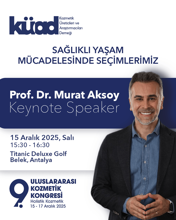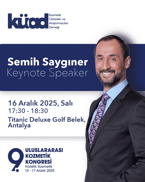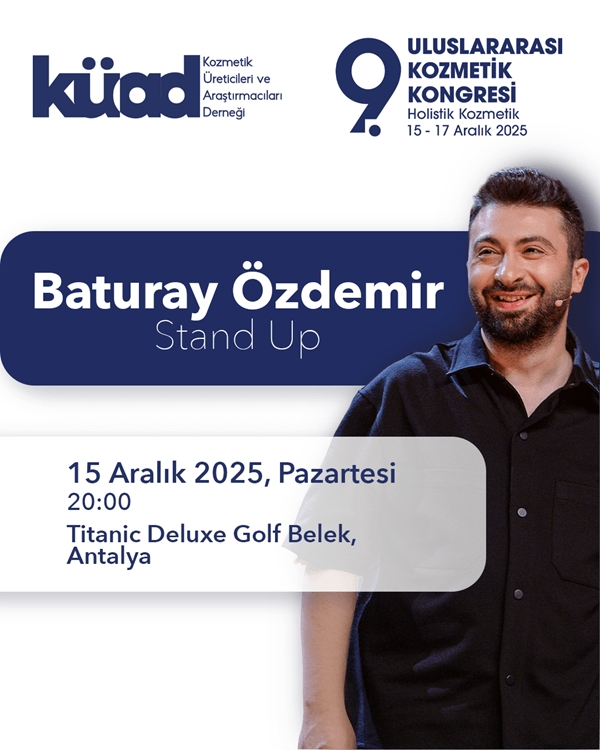 15-17 Aralık 2025 tarihlerinde Antalya’da gerçekleştirilecek kongre, sektör temsilcileri ve profesyonellerini bir araya getirecek. Ana teması “Holistik Kozmetik” olan kongre, uluslararası arenadan önemli sektör profesyonellerini Türkiye’de ağırlayacak. Kongrede, Prof. Dr. İbrahim Adnan SARAÇOĞLU holistik bakış açısıyla kişisel bakımı, Prof. Dr. Murat Aksoysağlıklı yaşam mücadelesinde seçimlerimizi anlatırken, zihinsel strateji ve becerileriyle tanınan Semih Saygıner ile eğlenceli stand-up gösterisiyle Baturay Özdemir katılımcılarla buluşacak.