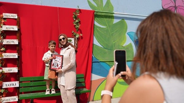Maltepe Belediyesi’ne bağlı 9 kreşte eğitim gören öğrenciler, karne heyecanını yaşadı. Yuvamız Maltepe Zübeyde Hanım Çocukevi’nde eğitim gören çocuklar, 2024-2025 eğitim öğretimi yılını başarıyla tamamlarken, bu mutlu günlerinde velileri de onları yalnız bırakmadı. Karne dağıtım töreni nedeniyle süslenen ve öğrencilerin günün anlam ve önemine yönelik olarak açtıkları çeşitli el işlerini içeren sergiyle bezenen kreşlerde büyük coşku yaşandı. Öğrenciler “karne hatırası”, “iyi tatiller”, “dönemin yıldızları”, “tatil zamanı”, “tatile uçuyoruz” ve “kıpır kıpır için karne aldığım için” yazan stantlar önünde birlikte fotoğraf çektirirken, yaptıkları el işlerini de gösterme fırsatı buldu.