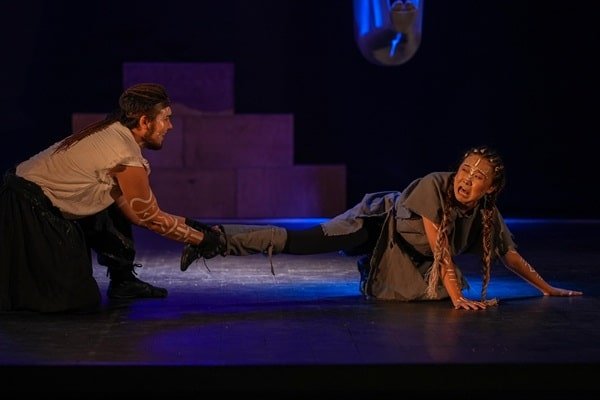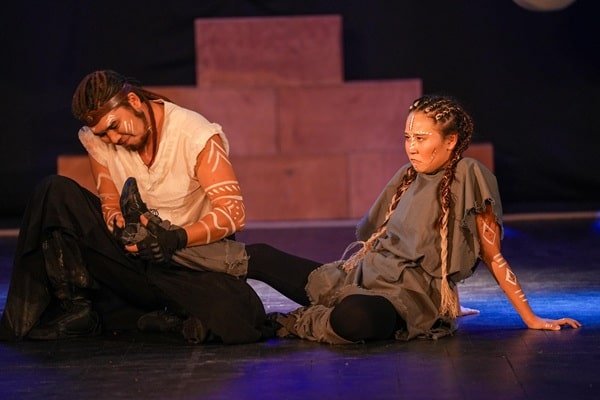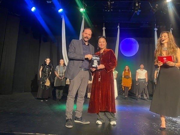 Açılış konuşmaları sonrası Kazakistan ZhastarAkimataLaboratoryDanceTheatre’ın “Siyah Pelerin” isimli dans ağırlık tiyatro gösterisi sahnelendi. Aşk, sadakat, ihanet ve ahlaki sınavlar üzerine kurulan oyunda; pragmatizmin ve gücün hâkim olduğu bir dünyada, hayvanlara insani özellikler verilerek alegorik bir anlatım kullanıldı. Zamanın eskimeyen en acı ve en güncel meseleleri, insanın özü, sorumluluk ve ruhsal değerler üzerinden eleştiriye tabi tutuldu ve herkesin bu sorunlar hakkında düşünmesinin önemine değinildi.
